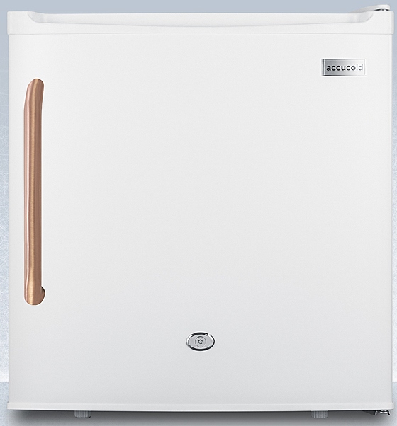 Accucold by Summit Appliance offers a quality line of refrigeration designed for healthcare applications, with pure copper handles that kill microbes. Sized just under 19" wide, the FFAR23LTBC is a compact all-refrigerator with a white exterior finish and copper handle. The front door includes a factory-installed lock for convenient security, with two keys included. The sealed back helps to ensure easier cleanup and a hospital grade 'green dot' cord offers added safety in high traffic environments. This unit has a right hand door swing.Read More